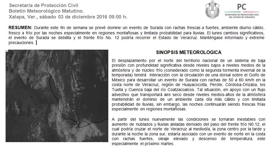 derivado del paso del frente frío N0.12, el cual podría cruzar el norte de