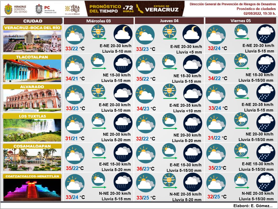 Pronóstico del tiempo a 72 horas, 02 agosto de 2022