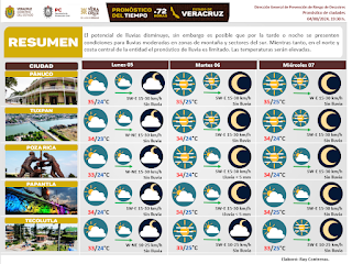 Pronóstico a 72h para diferentes ciudades de Veracruz